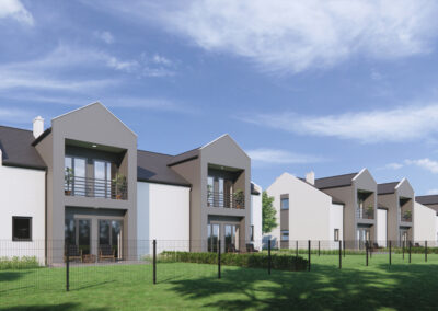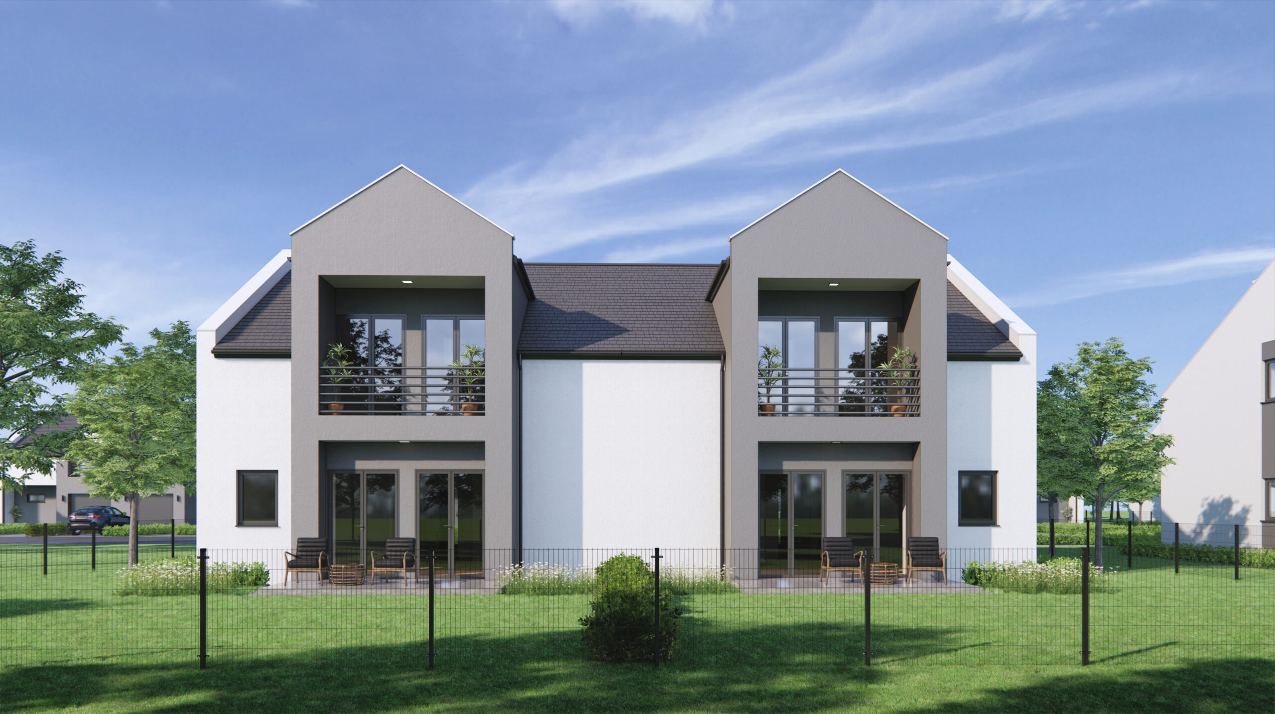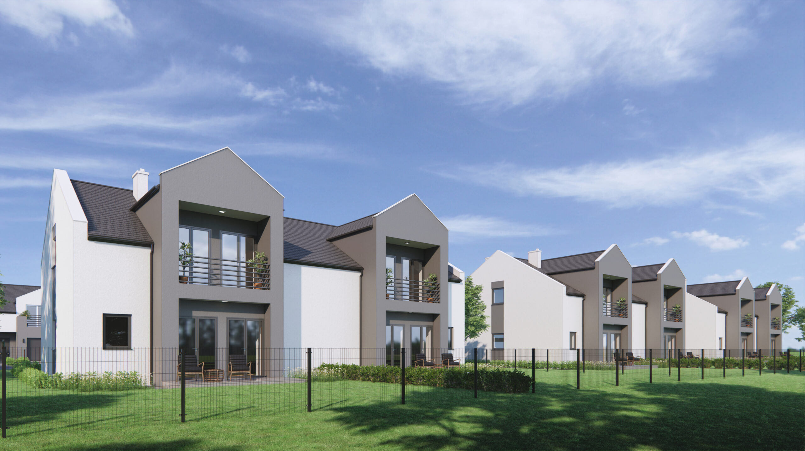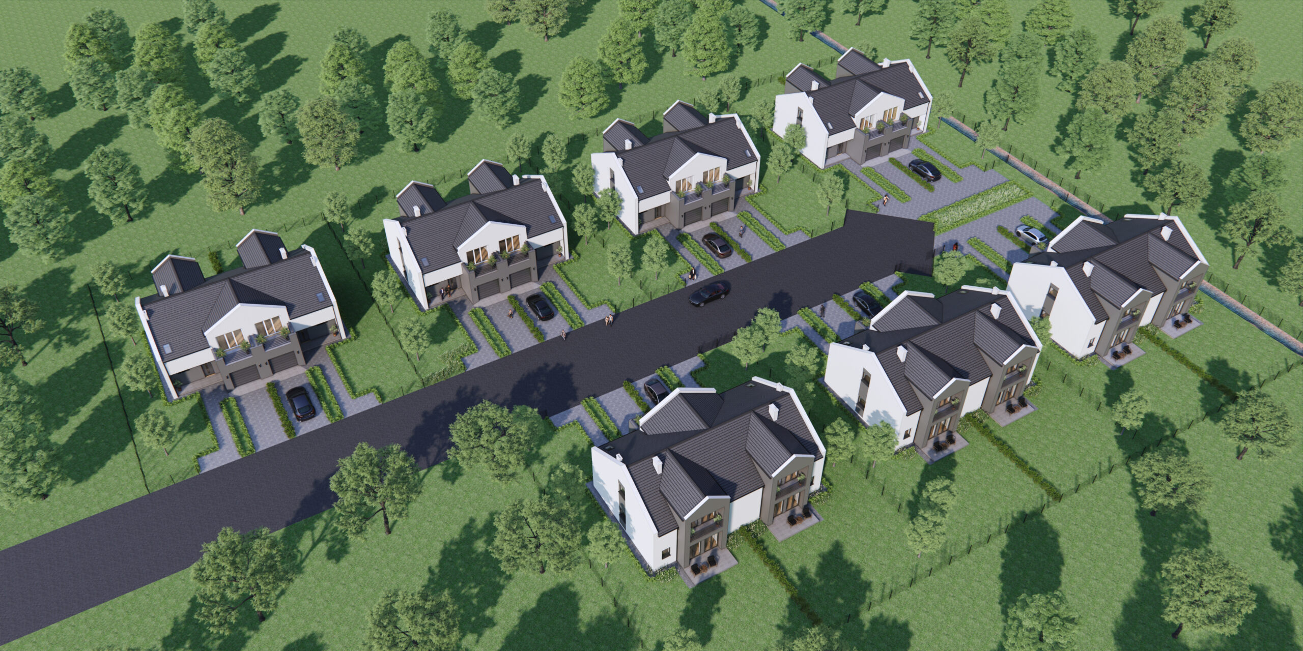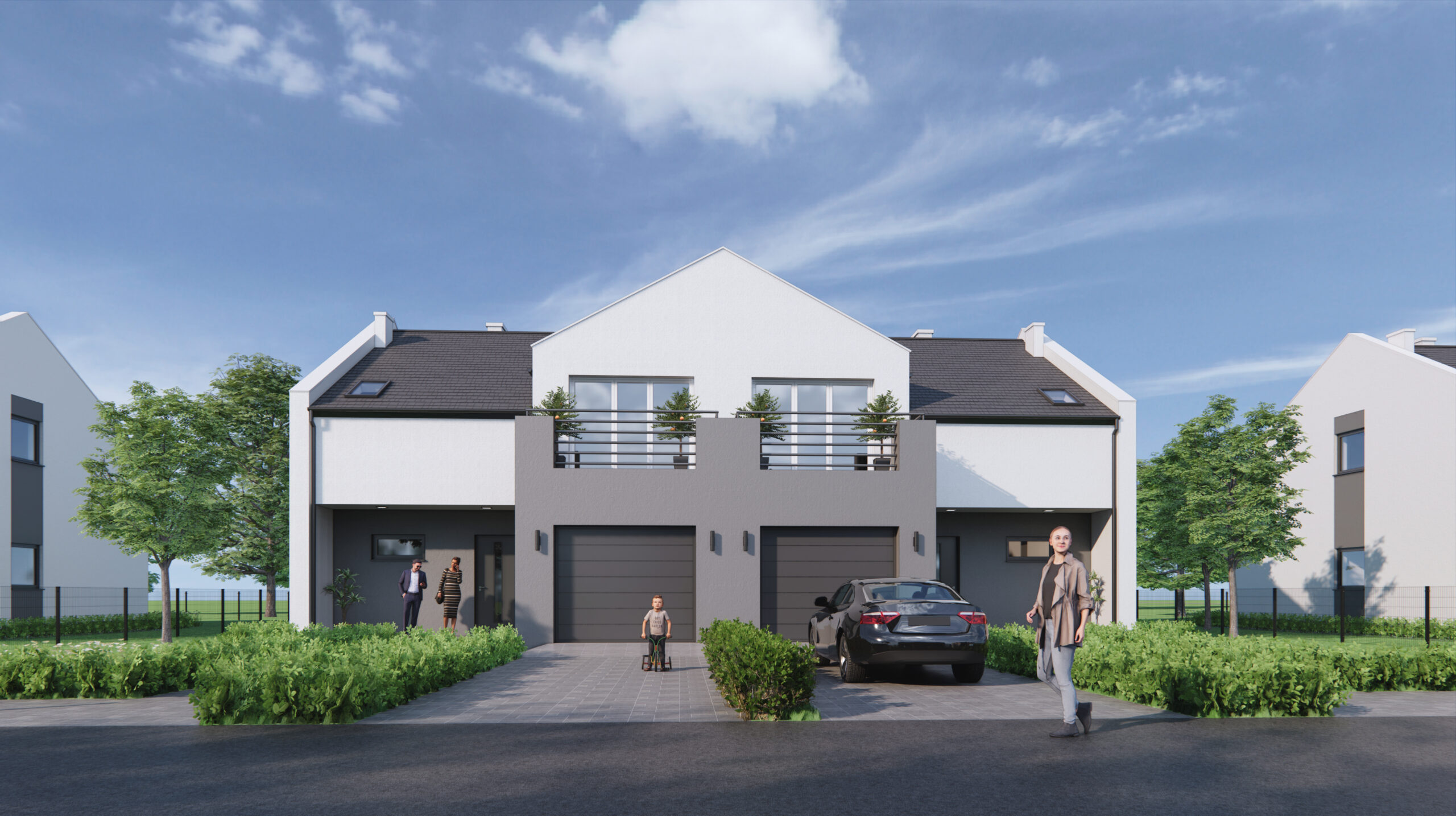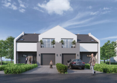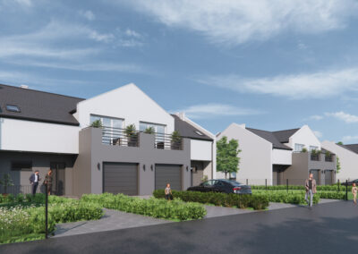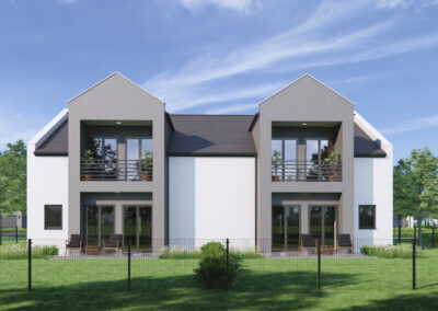 Jako firma deweloperska oferujemy Naszym Klientom osiedle 14 komfortowych domów jednorodzinnych w zabudowie bliźniaczej, we wsi Jaźwiny, gmina Trzebnica.